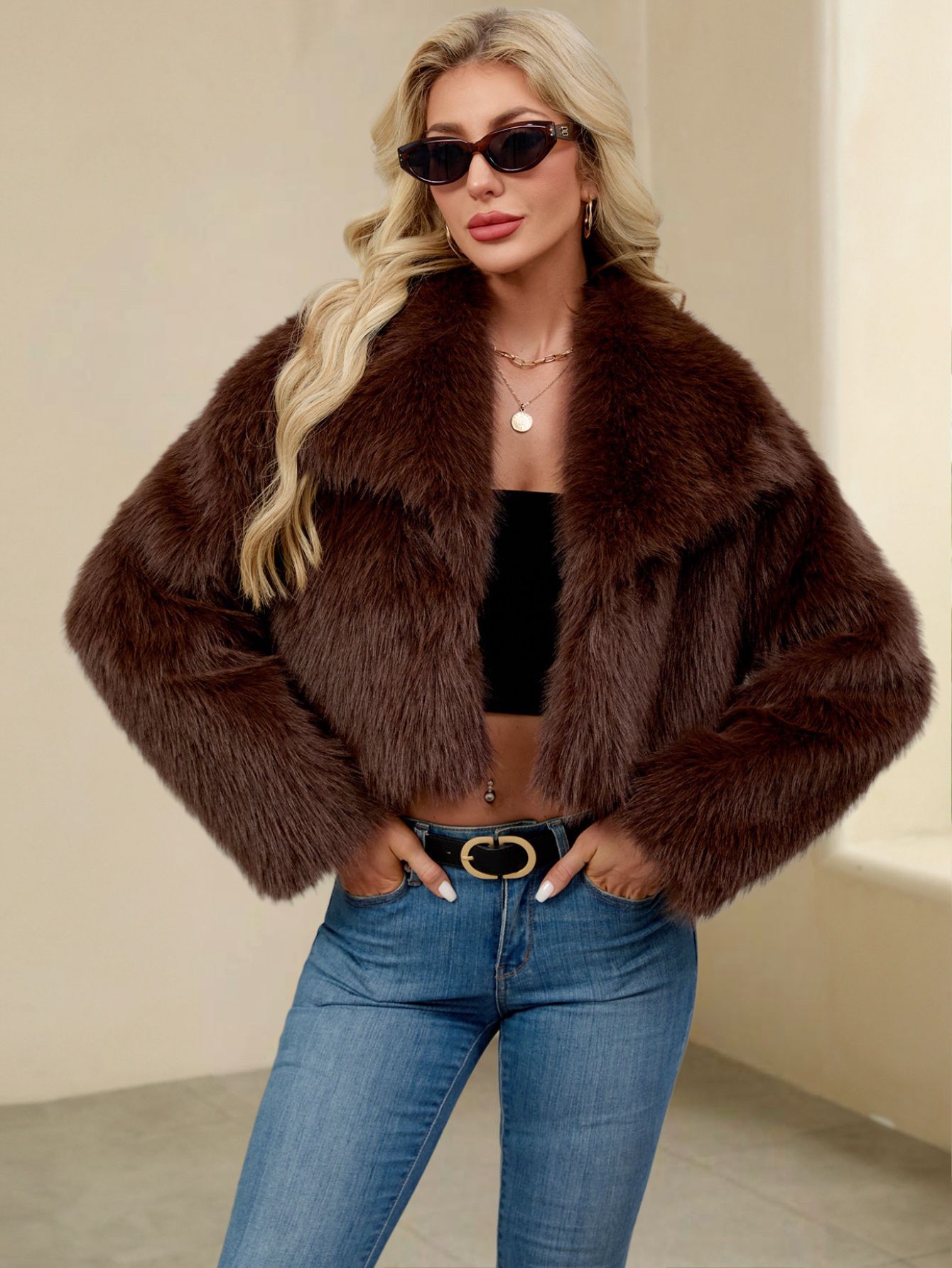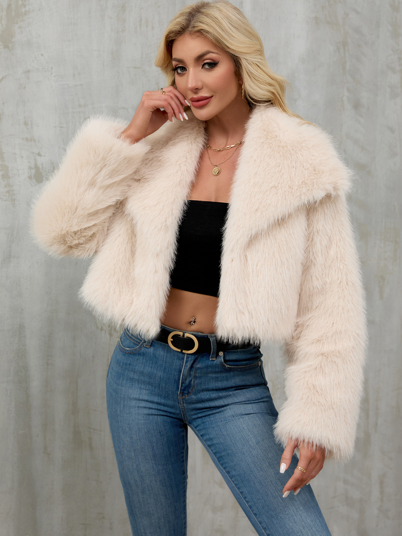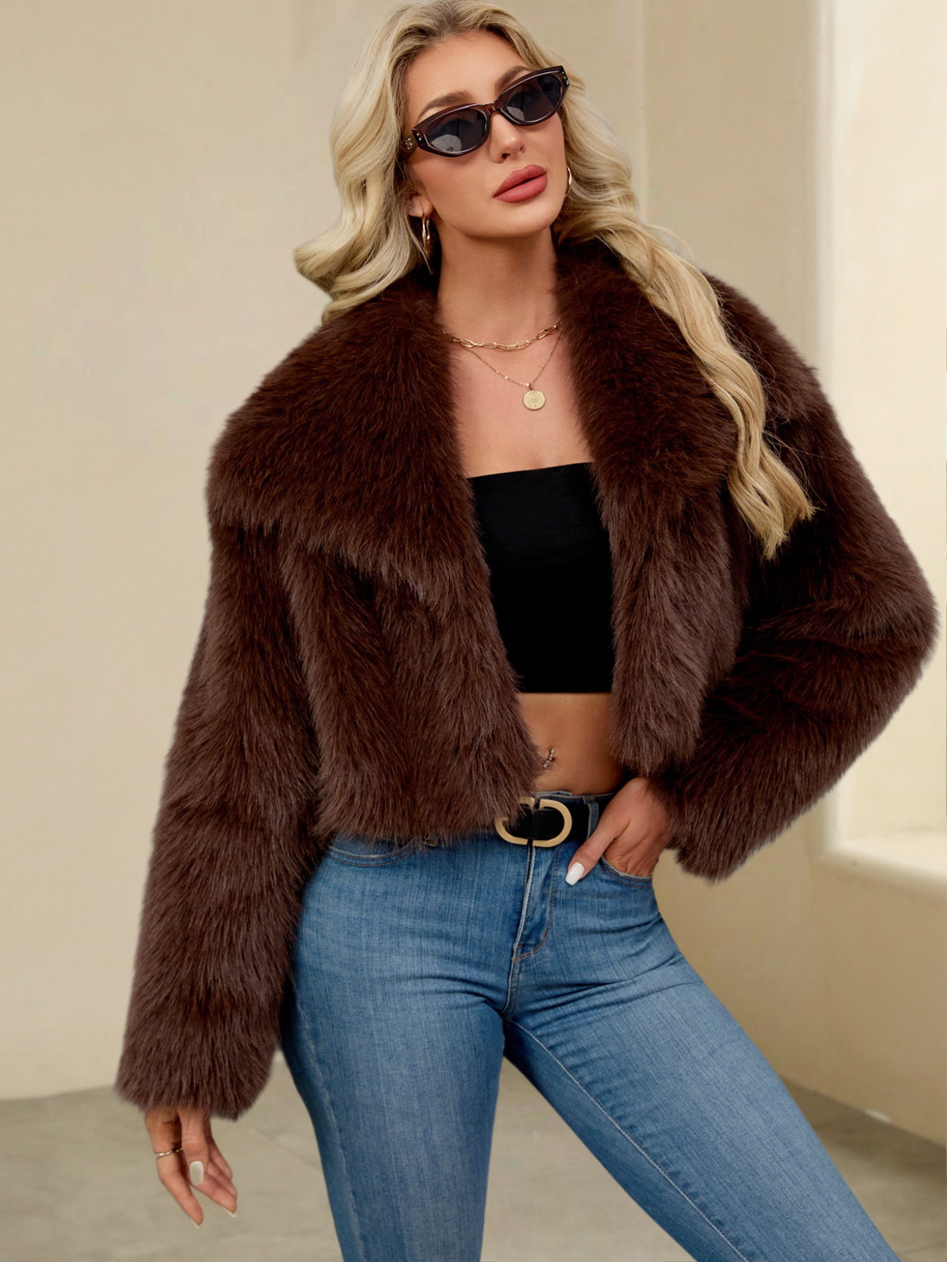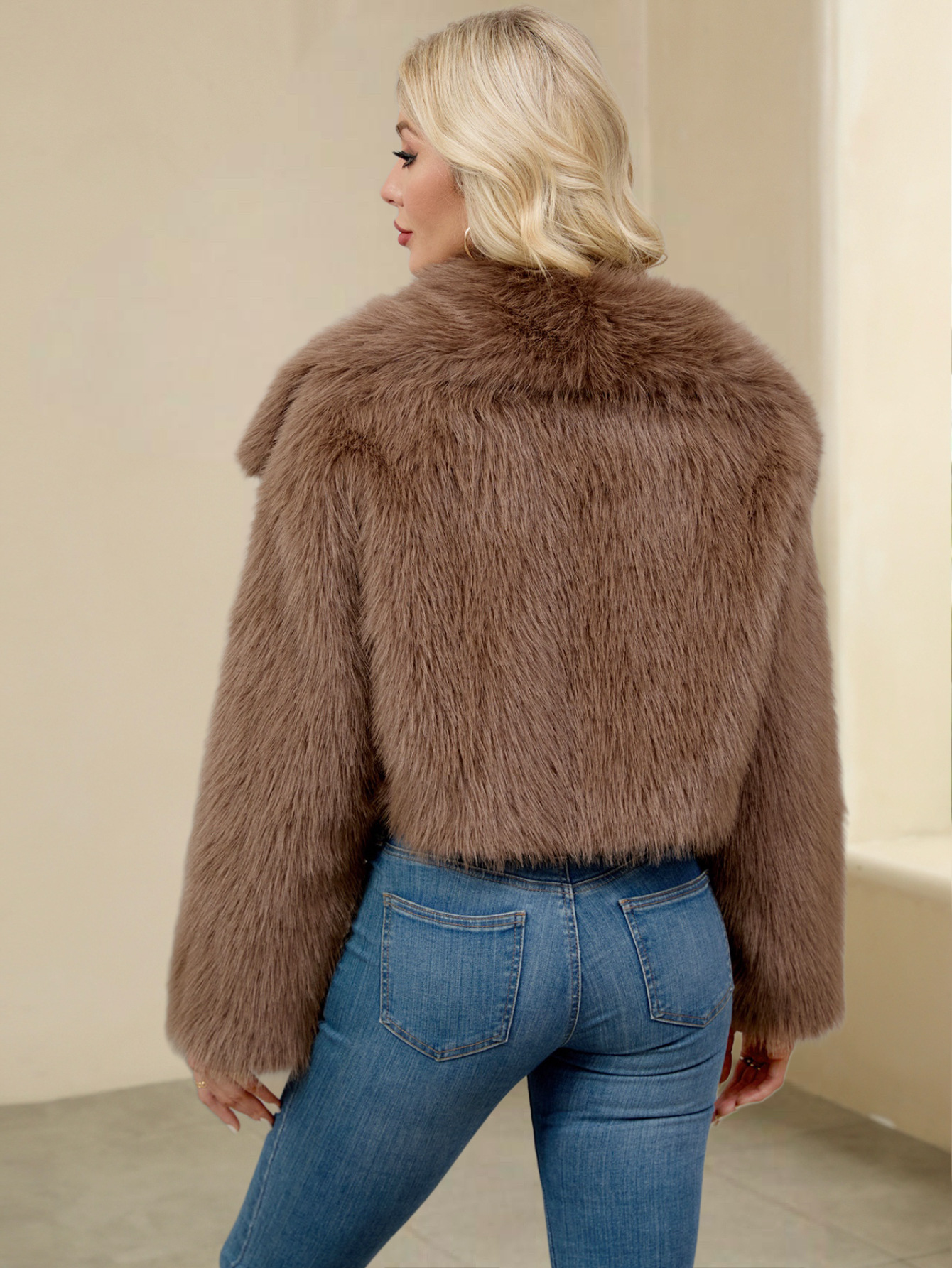 Faux Fur Flared Collar Women's Short Faux Fur Coat