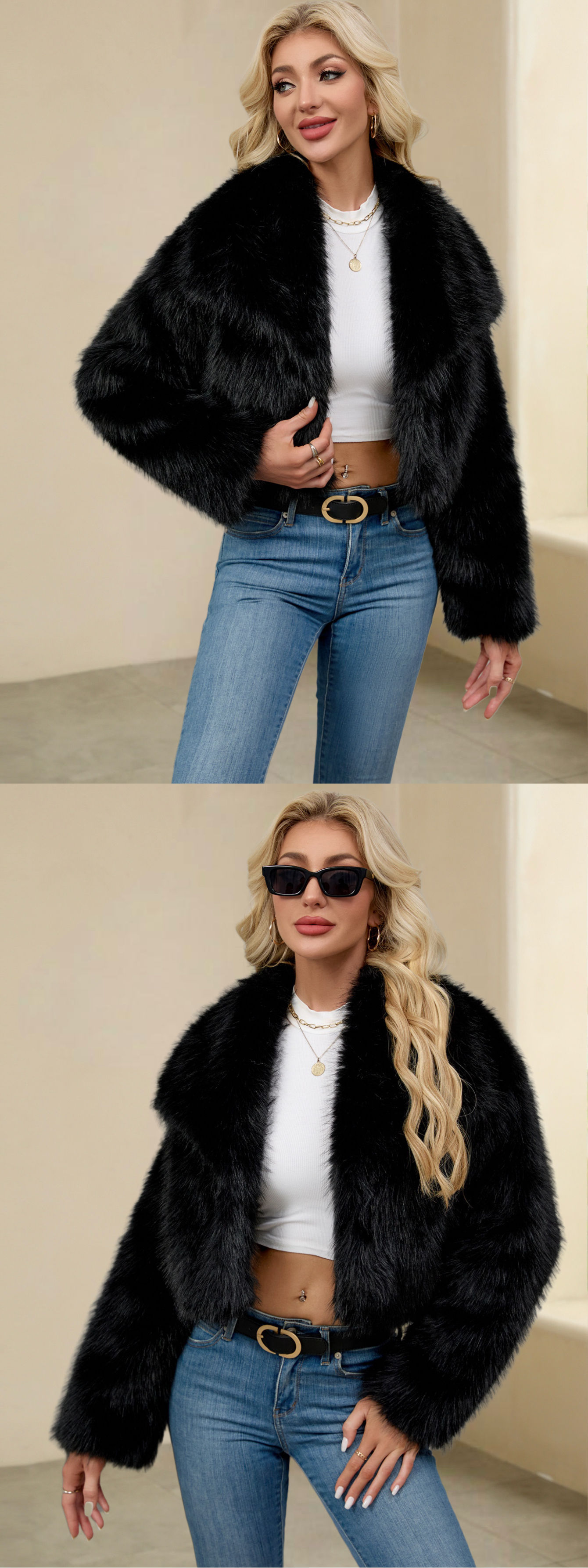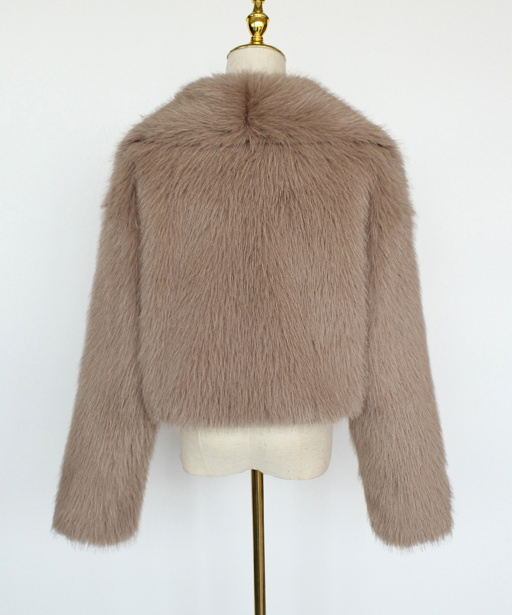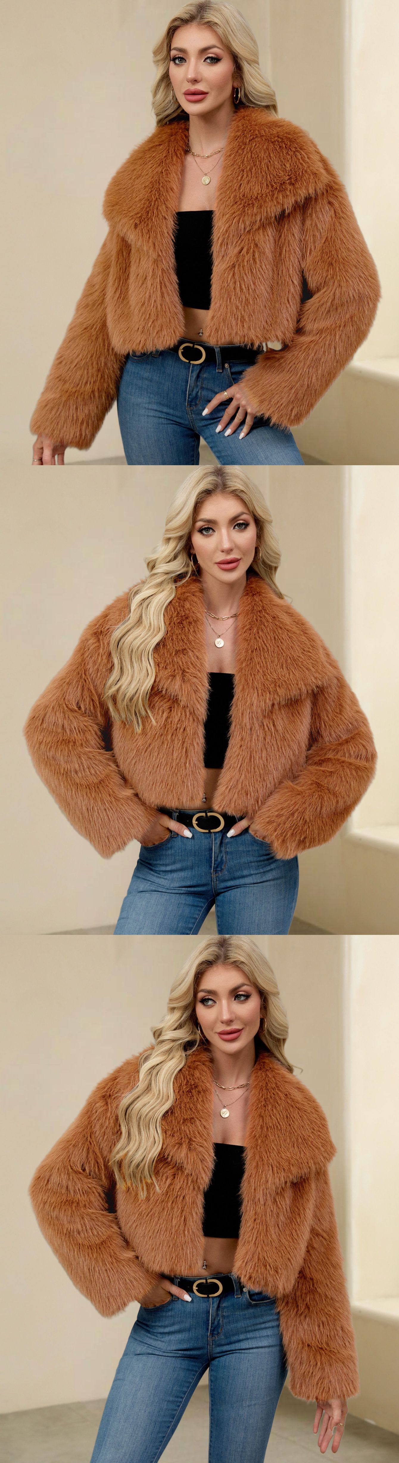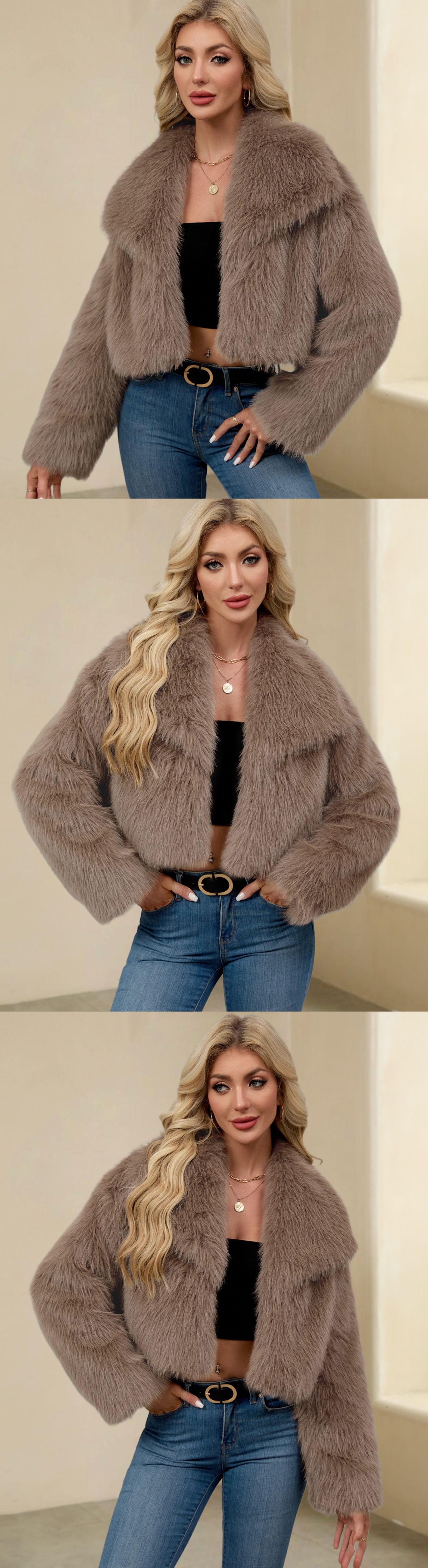 Faux Fur Flared Collar Women's Short Faux Fur Coat