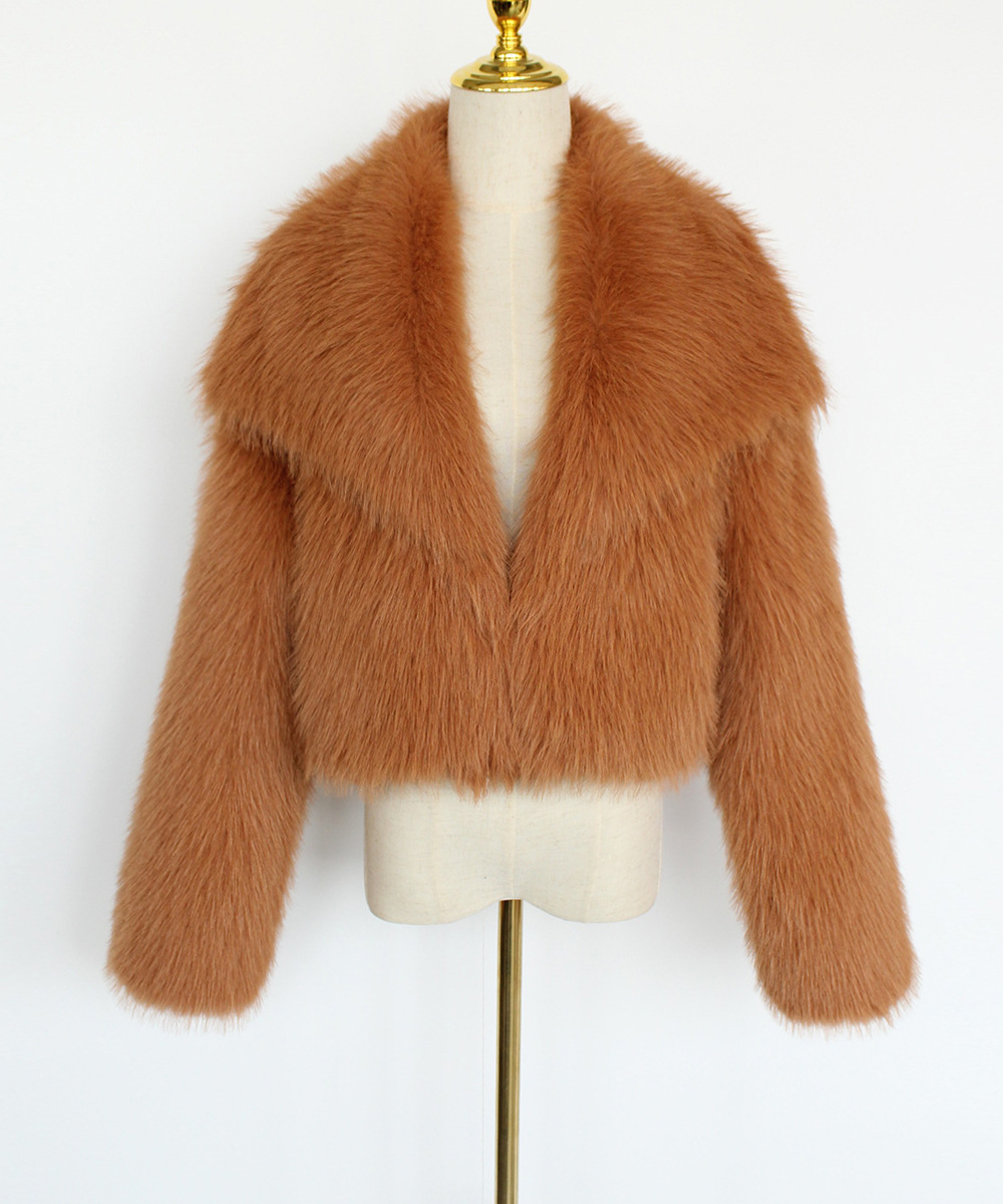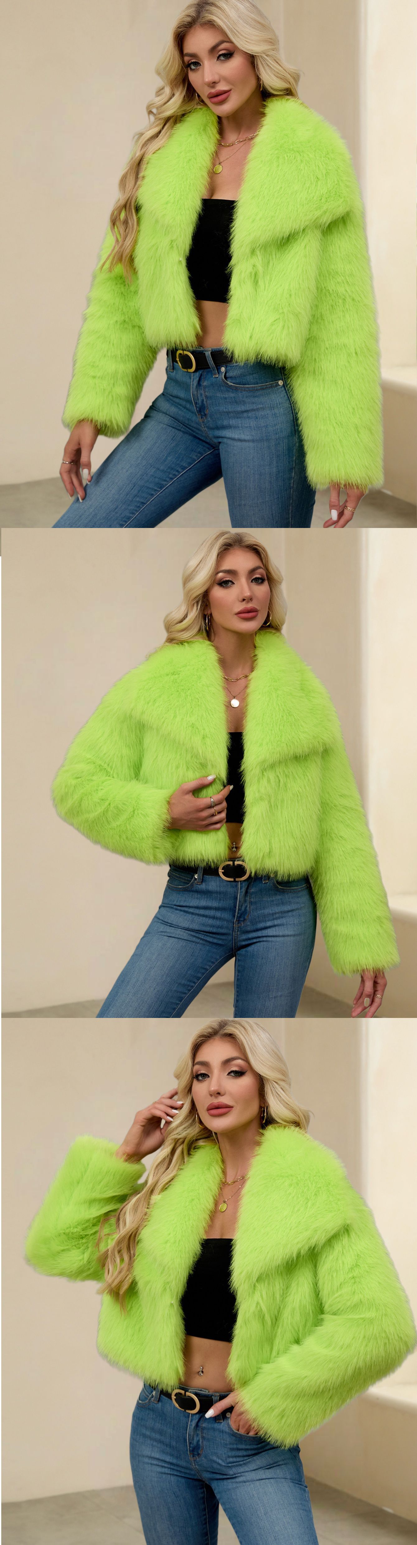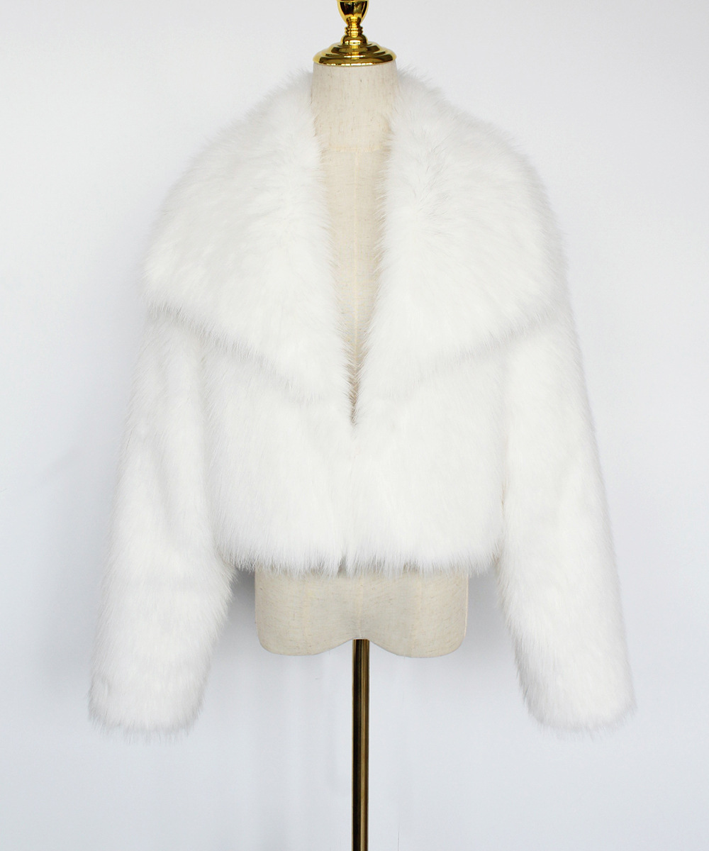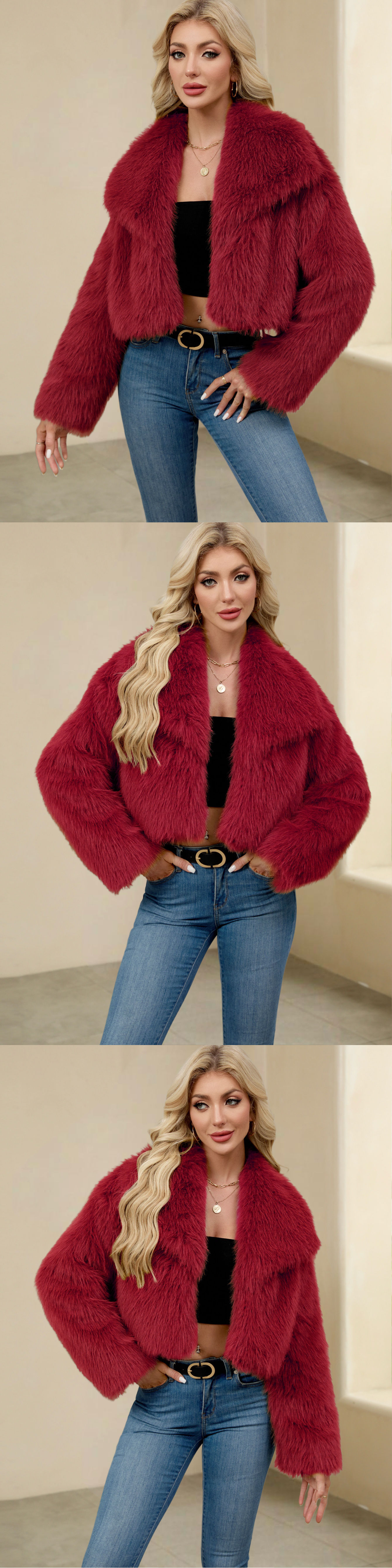 Faux Fur Flared Collar Women's Short Faux Fur Coat