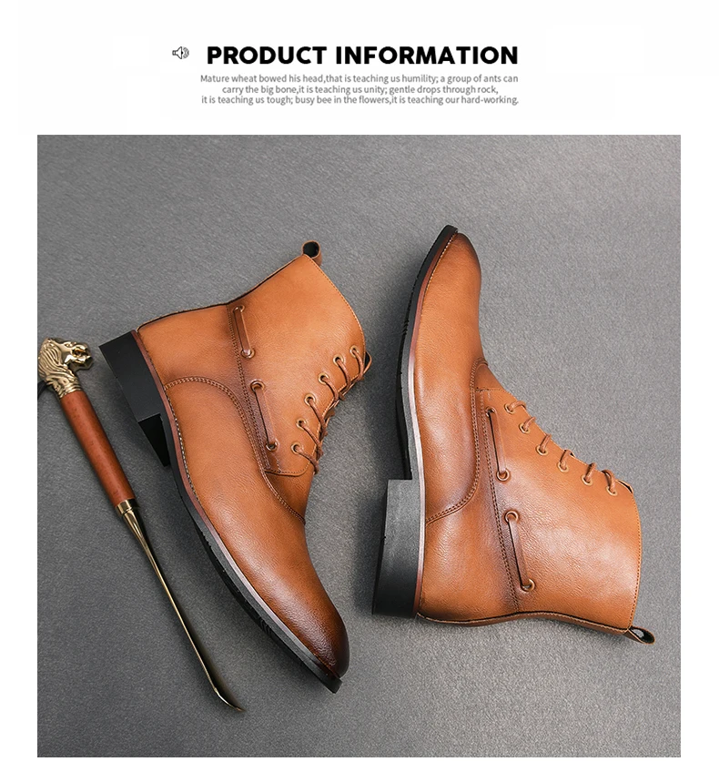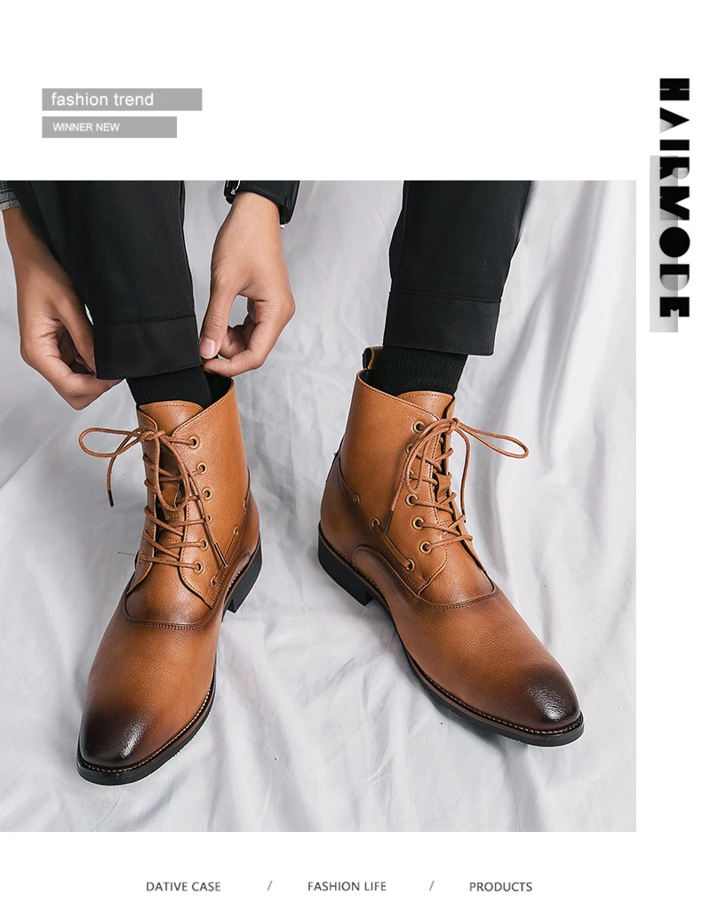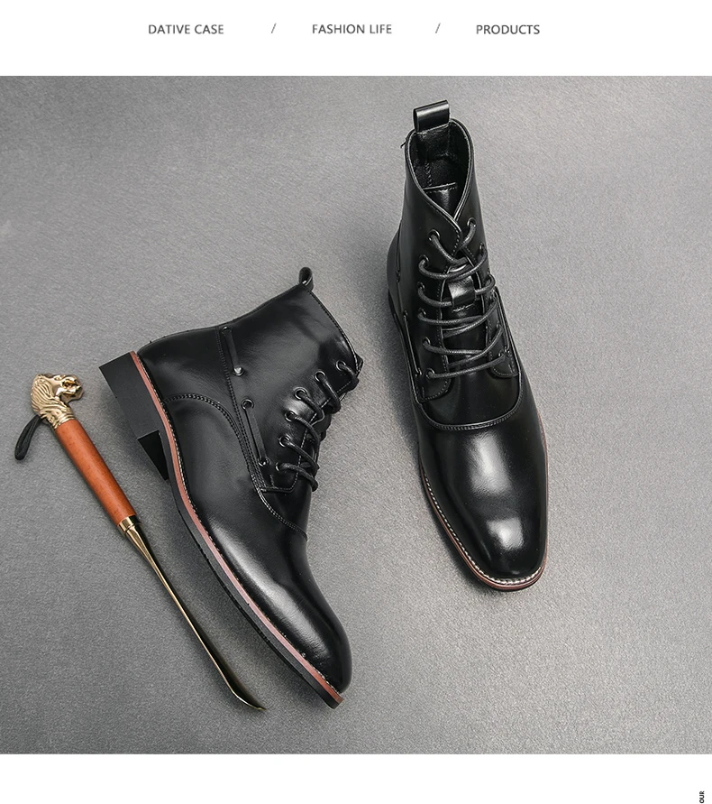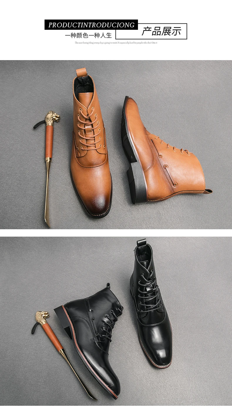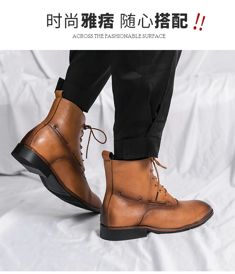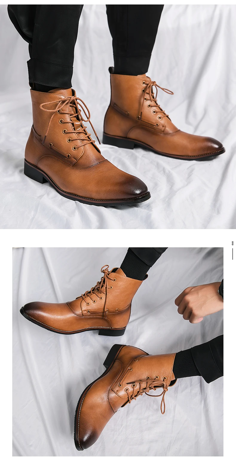 Men's Boots High-top Breathable PU Leather Retro Men's Motorcycle Tooling Shoes Boots for Men Leather Cowboy Boots