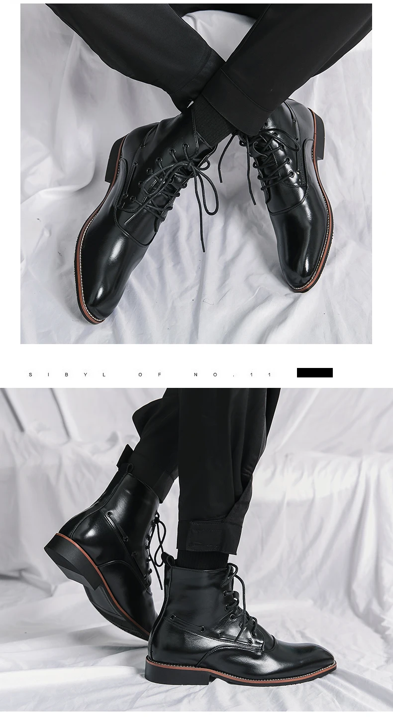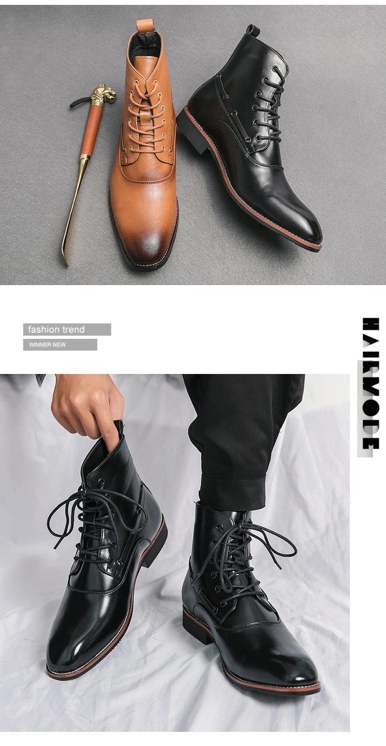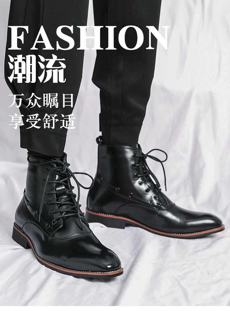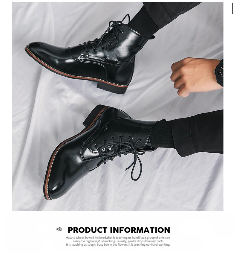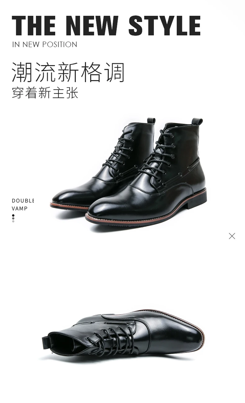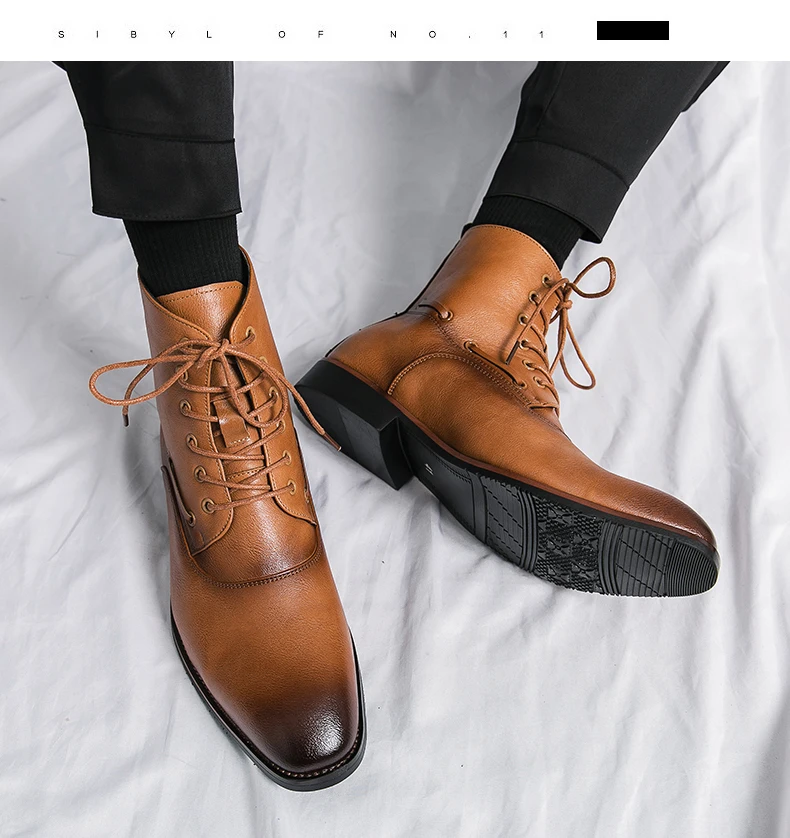 Men's Boots High-top Breathable PU Leather Retro Men's Motorcycle Tooling Shoes Boots for Men Leather Cowboy Boots