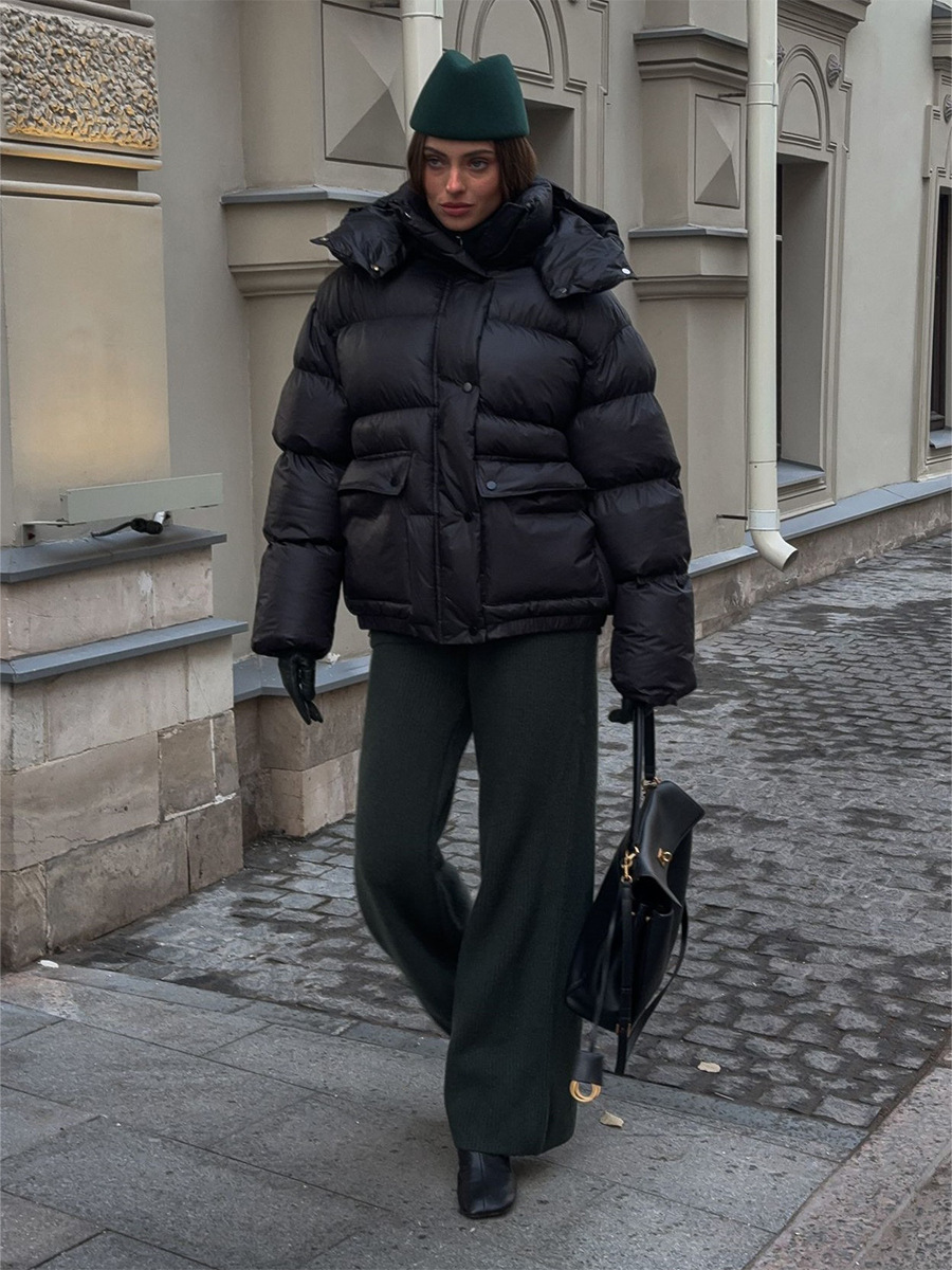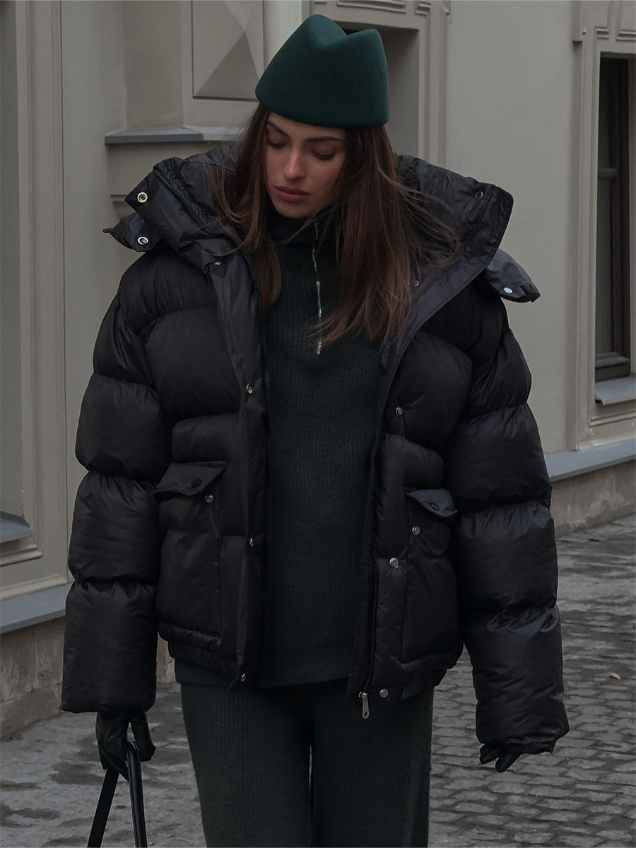 Square pocket cotton jacket warm hooded cotton jacket for women